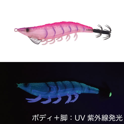 Izgleda baš kao škampi! Zavodi lignje oblikom koji slijedi realističan škamp. Položaj nakon akcije štapom održava horizontalni položaj, za koji se kaže da ga je lignjama lako držati, i priprema se za ugrize. Površina tijela nije omotana krpom već je izrađena od ABS smole, a površina je neravna i hrapava tako da nema neugodnog osjećaja kada je lignja dotakne. Noge koje se protežu ispod tijela izrađene su od mekanog materijala koji se razlikuje od tijela. U vrijeme pada i akcije, noge fino vibriraju kako bi se dopale lignjama.