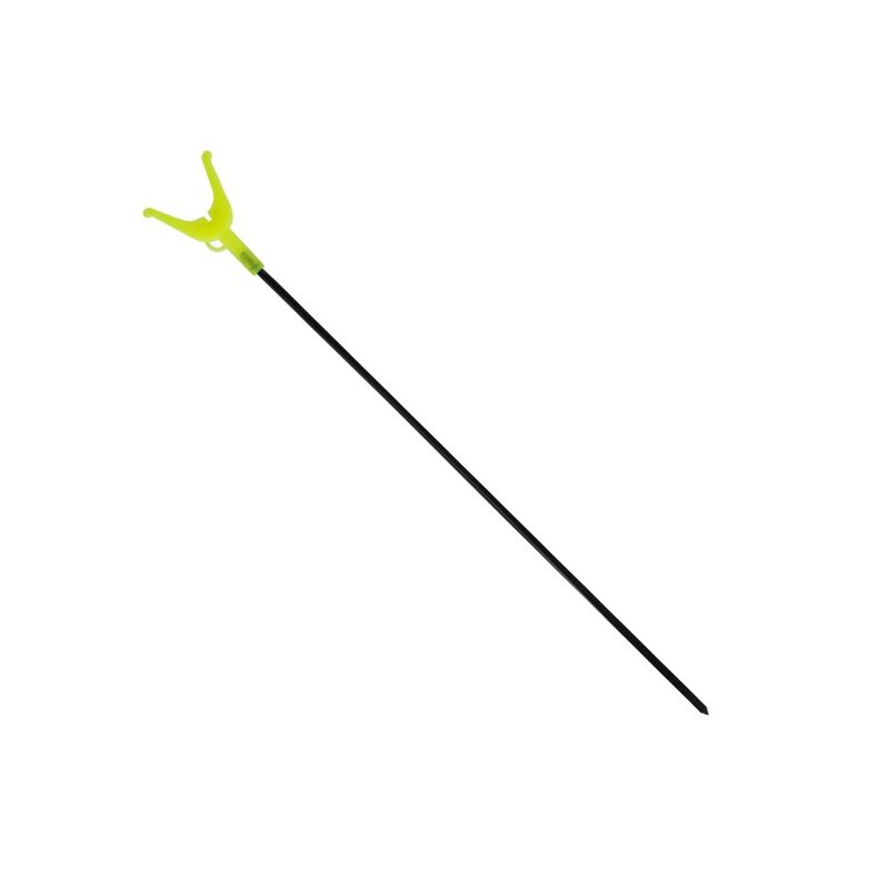 Najjednostavnija i najpraktičnija vidna palica koju možete zamisliti. Čvrsti željezni materijal, vrlo izdržljiva. Ne može se savijati kao aluminijske verzije. Tanka je, pa stane u mali prostor. Zbog upečatljive boje vilice, ne ostavljamo je u travi tijekom ribolova, a stavljanje štapa na nju je dječja igra. Mali poluprsten formiran ispod glave odmorišta štapa koristi se za vezanje strune indikatora ugriza ili strune držača ribe. U donjem dijelu glave vidne palice nalazi se mali utor za strunu, tako da se štap može slobodno pomicati dok štap stoji u držaču.